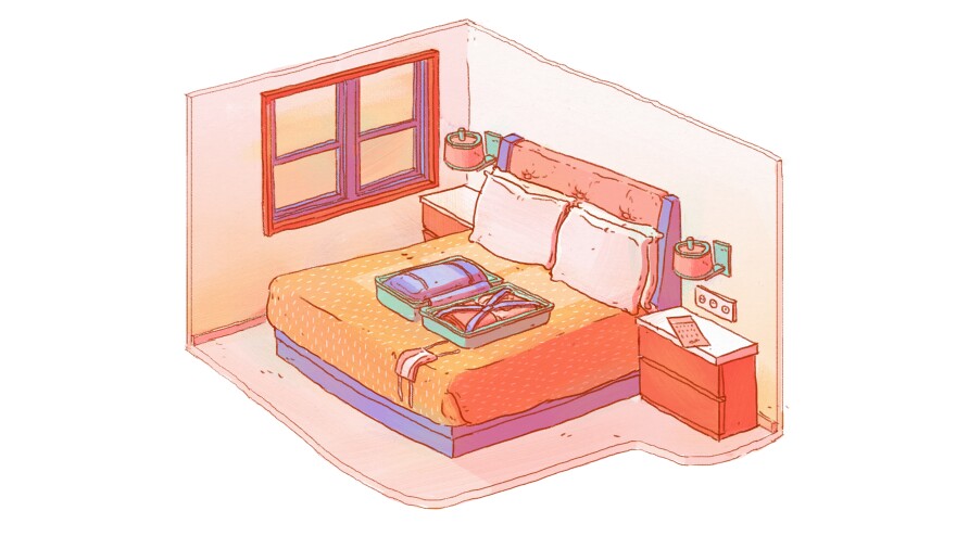 What alters risk? Bring disinfecting wipes to wipe down the TV remote control and other common surfaces. You might also want to remove the bedspread since it may not be cleaned after every guest, suggests Miller. Ask about the hotel's cleaning policies, as many have new COVID-19 protocols. "Beware of the elevators! Use the knuckle of your little or ring finger to press the buttons," says Miller.