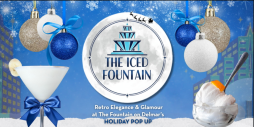 The Iced Fountain is a sophisticated holiday pop-up experience at The Fountain on Delmar. Guests are invited to indulge in a stylish, mid-century retro aesthetic, transforming the space into an elegant "iced" cocktail lounge atmosphere.